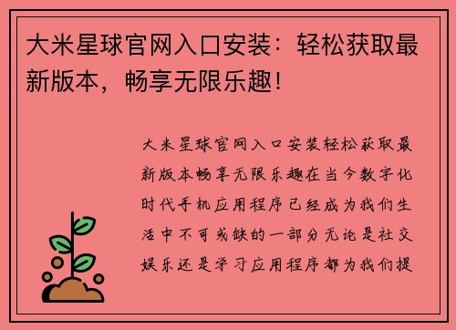 如何安全快速下载Netflix安装包并进行安装指南   在现代社会,流媒体服务已经成为人们日常娱乐的重要组成部分,而Netflix作为全球最大的流媒体平台之一,吸引了数以亿计的用户。为了更好地享受Ne...
